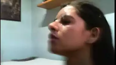 A desi girl named Yuktha enjoyed and experienced cum on face session during hot blowjob to her horny boyfriend. Desi girl Yuktha had never experienced cum facial even though she had sucked her boyfriend’s hard erected dick before. This was her first cum on face experience with her boyfriend and hence this one got filmed for future. Desi girl Yuktha has got flawless body structure; her erotic big boobs, stomach, navel hole, thighs, pussy, ass, and her whole body parts were adorable to watch.